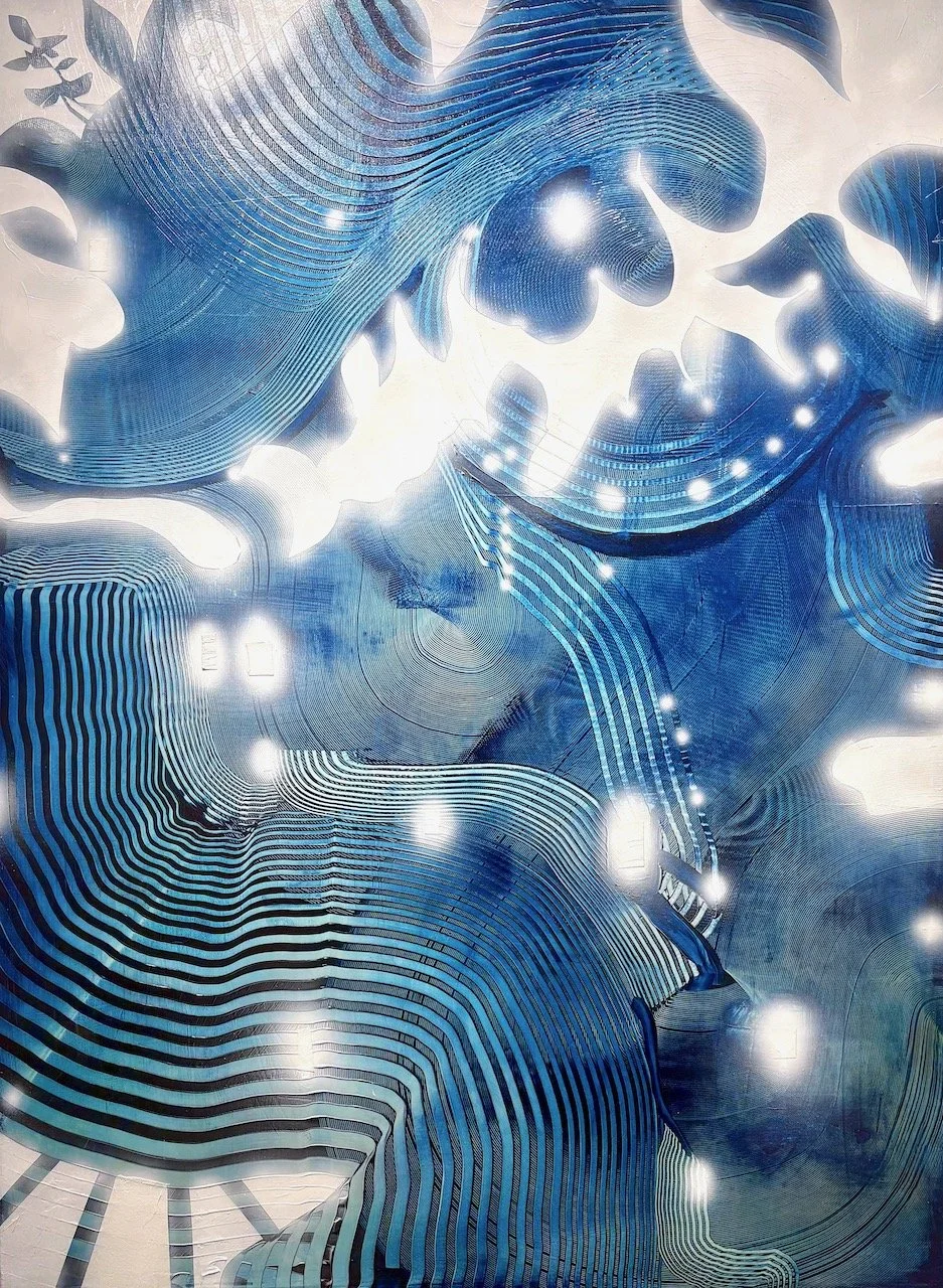 I wanted to make paintings of these patterns and I wanted to depict these patterns in the process of becoming fleeting emotions and tangible spaces and beings within those spaces. I thought of them as informatic beings.