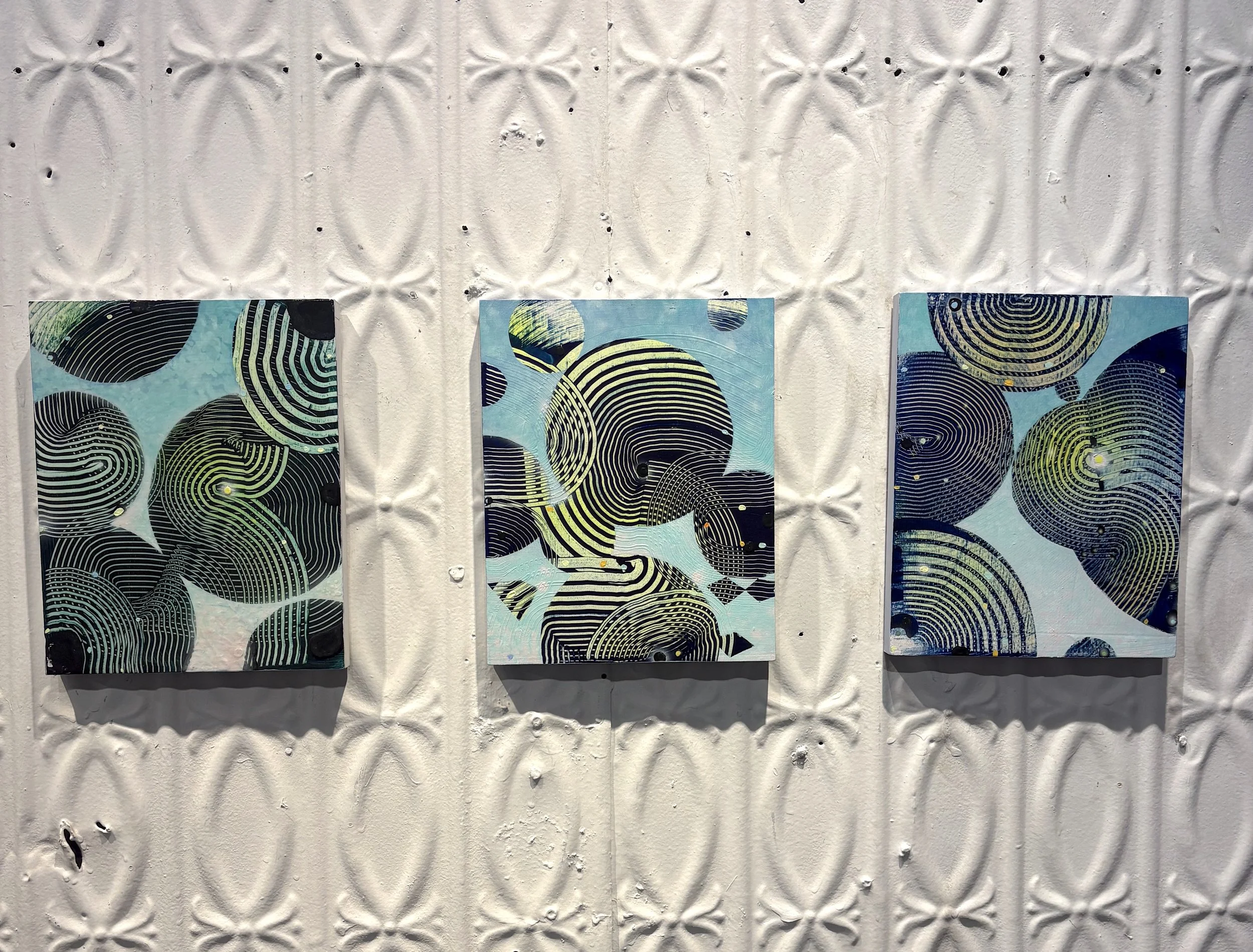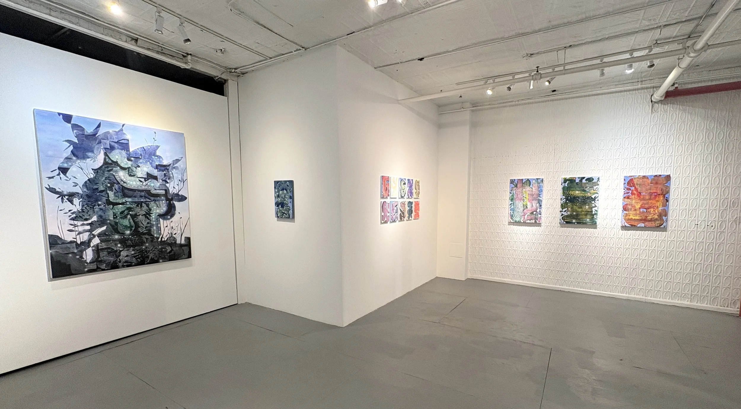 JE: I sort of see three different series. The three paintings in the back alcove area are the oldest at about two years old, and they’re the pieces that started the rest. I have a large body of work that consists of small works on panel that I’ve made to help me more quickly work through some of the hundreds of ideas I have. There are, I think, 23 of these smaller paintings in this show.